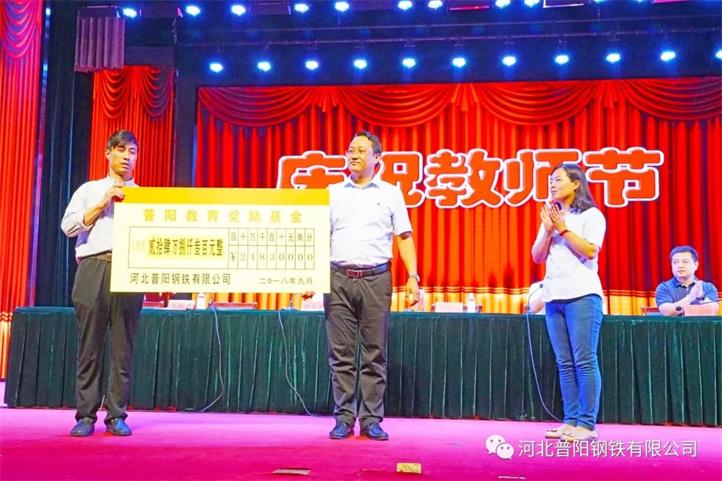 會(huì)上總經(jīng)理助理石現(xiàn)英代表公司向陽(yáng)邑教委捐贈(zèng)24.83萬(wàn)元作為教育獎(jiǎng)勵(lì)基金,并發(fā)表重要講話。 王書(shū)記就如何加快陽(yáng)邑教育又好又快發(fā)展,講了三點(diǎn)意見(jiàn):一是面向未來(lái),著眼長(zhǎng)遠(yuǎn),全面提高教育教學(xué)質(zhì)量;二是與時(shí)俱進(jìn),奮力拼搏,加快建設(shè)高素質(zhì)的教師隊(duì)伍;三是高度重視,積聚合力,努力為教育發(fā)展?fàn)I造良好的外部環(huán)境。要求全鎮(zhèn)廣大教育工作者要志存高遠(yuǎn)、為人師表、嚴(yán)謹(jǐn)篤學(xué)、與時(shí)俱進(jìn),不斷深化教學(xué)改革、優(yōu)化教學(xué)管理,不斷提高專(zhuān)業(yè)素質(zhì)和執(zhí)教水平,全力促進(jìn)陽(yáng)邑教育優(yōu)質(zhì)、快速、均衡發(fā)展。同時(shí),號(hào)召各部門(mén)、各站所、各村委會(huì)、社會(huì)各界要以發(fā)展教育為己任,積極為學(xué)校、教師辦實(shí)事,辦好事,主動(dòng)為教育發(fā)展排憂解難。號(hào)召企業(yè)家、社會(huì)有識(shí)之士向普陽(yáng)鋼鐵有限公司看齊,加入到“捐資助教”隊(duì)伍中來(lái),真正形成人人尊師重教、人人關(guān)心支持教育事業(yè)發(fā)展的良好社會(huì)風(fēng)尚,為建設(shè)“教育強(qiáng)鎮(zhèn)”和富裕、文明、美麗新陽(yáng)邑做出新的更大的貢獻(xiàn)!