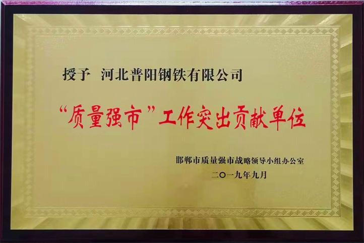 普陽(yáng)鋼鐵自建廠以來(lái),始終高度重視質(zhì)量管理工作,專(zhuān)注于為客戶(hù)提供高質(zhì)量、高附加值的精品鋼材,全面推行“窄幅工藝”和精益管理,通過(guò)“走出去,引進(jìn)來(lái)”“嚴(yán)管細(xì)管”等方法,持續(xù)不斷地優(yōu)化工藝技術(shù),穩(wěn)定提升產(chǎn)品質(zhì)量,憑借卓越的質(zhì)量管理,先后榮獲“武安市長(zhǎng)質(zhì)量獎(jiǎng)”“河北省政府質(zhì)量獎(jiǎng)提名獎(jiǎng)”“邯鄲市長(zhǎng)質(zhì)量獎(jiǎng)”和“全國(guó)質(zhì)量獎(jiǎng)鼓勵(lì)獎(jiǎng)”等重量級(jí)榮譽(yù),有5項(xiàng)產(chǎn)品榮獲國(guó)家冶金產(chǎn)品實(shí)物質(zhì)量最高獎(jiǎng)項(xiàng)“金杯獎(jiǎng)”。 |