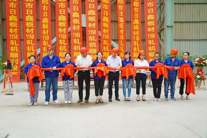 10時(shí)整,日鑫板材1150軋機(jī)開軋剪彩儀式正式開始,各位領(lǐng)導(dǎo)共同為1150軋機(jī)開軋剪彩。之后,人力企劃部長(zhǎng)高文彩和日鑫板材廠長(zhǎng)申習(xí)民共同為1150軋機(jī)軋出的第一個(gè)冷軋卷戴花慶賀。現(xiàn)場(chǎng)人員紛紛與“第一卷”合影留念。