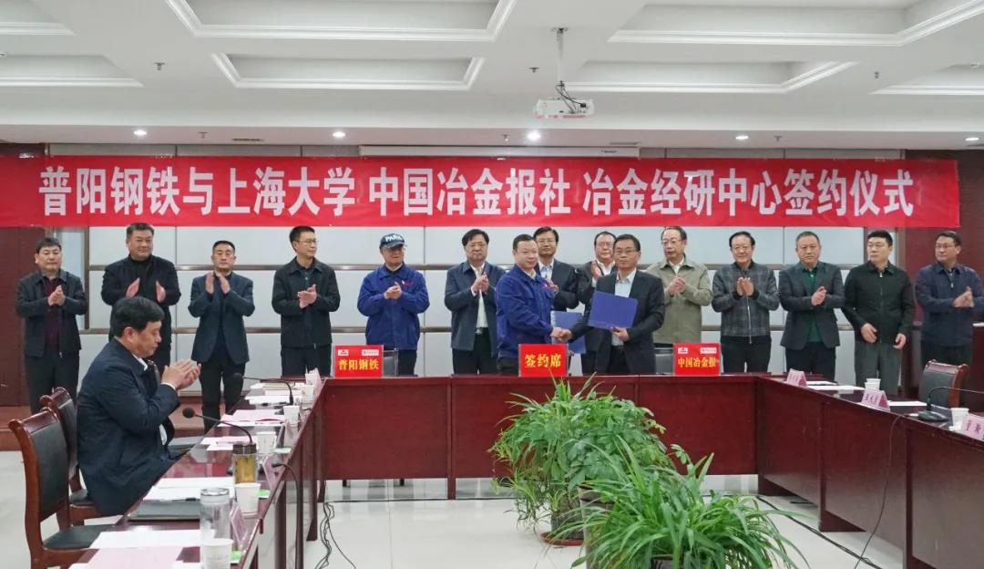 11月19日上午,河北普陽鋼鐵集團與上海大學(xué)、中國冶金報社、冶金工業(yè)經(jīng)濟發(fā)展研究中心戰(zhàn)略合作簽約儀式在文化中心隆重舉行。出席儀式的領(lǐng)導(dǎo)和專家有省委軍民融合辦一級巡視員徐振川、規(guī)劃處副處長王如冰、政策法規(guī)處主任李勇,河北省冶金行業(yè)協(xié)會顧問、河北省政府參事室特約研究員王大勇,國家973項目首席科學(xué)家、上海大學(xué)材料學(xué)院院長董瀚教授,上海大學(xué)材料學(xué)院副院長韋習(xí)成教授,中國鋼鐵工業(yè)協(xié)會副秘書長、中國冶金報社黨委書記、社長陳玉千,中國冶金報社副社長熊余平,冶金工業(yè)經(jīng)濟發(fā)展研究中心副主任鄭玉春;出席儀式的武安方面領(lǐng)導(dǎo)有市委書記趙洪山,市委常委、常務(wù)副市長張國群,市委常委、組織部部長宋懷志,市委常委、秘書長馬曉斌,市委常委、武裝部部長石兵江,市政府副市長賀良,市政協(xié)副主席、應(yīng)急管理局長王增平;市委辦、政府辦、發(fā)改局、商務(wù)局、科工局、環(huán)保分局、自然資源與規(guī)劃局、行政審批局、工業(yè)園區(qū)等部門負(fù)責(zé)同志也出席了本次簽約儀式。集團黨委書記、董事長郭恩元,副書記、總經(jīng)理石躍強和副總經(jīng)理郭龍鑫、王瑞華參加了簽約儀式。