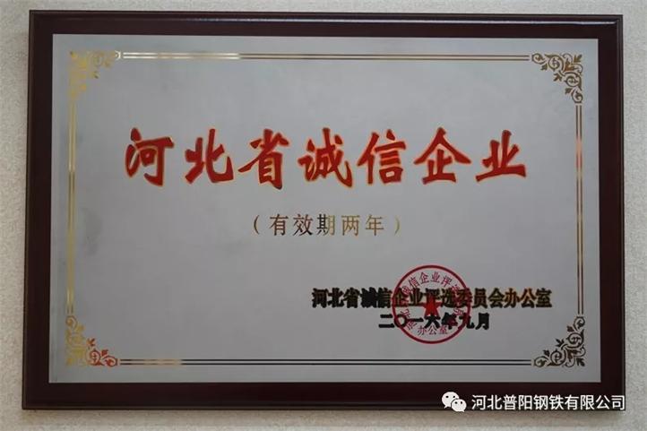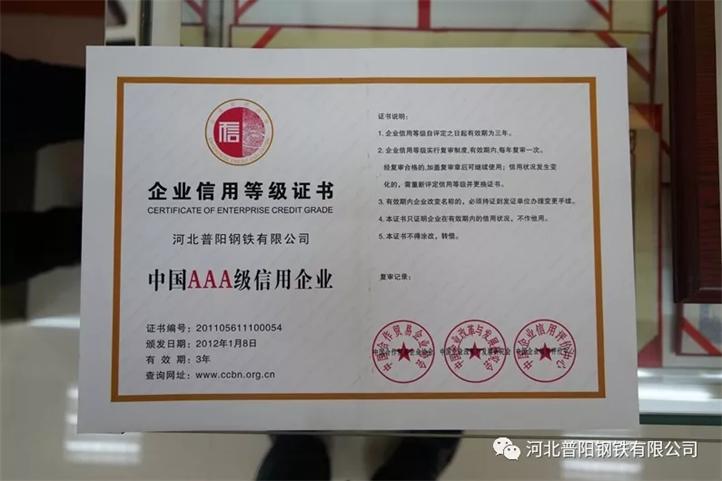 多年來,普陽以誠鑄品牌,以信得民意。在誠信方面,自2013年起,公司連續(xù)五年被評為“河北省誠信企業(yè)”。在質(zhì)量信用方面,連續(xù)三年被評為“中國AAA級信用企業(yè)”。