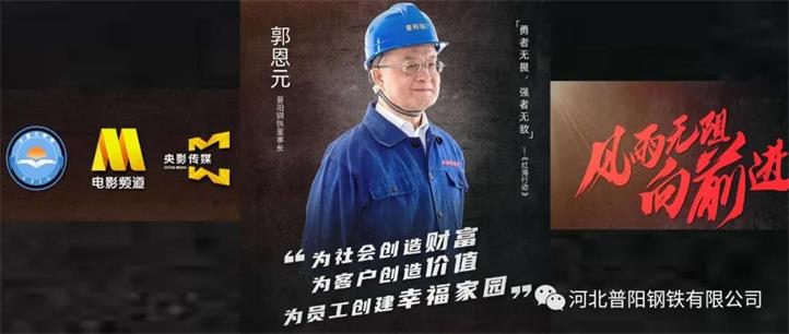 3月6日,河北普陽(yáng)鋼鐵集團(tuán)(以下簡(jiǎn)稱(chēng)“普陽(yáng)”)黨委書(shū)記、董事長(zhǎng)郭恩元走進(jìn)CCTV-6電影頻道,亮相《風(fēng)雨無(wú)阻向前進(jìn)》企業(yè)家系列公益短片,為全國(guó)戰(zhàn)“疫”勝利加油打氣!郭董用鏗鏘有力的聲音,闡述了自己創(chuàng)業(yè)的初心和使命,并呼吁大家要對(duì)中國(guó)經(jīng)濟(jì)有信心,對(duì)戰(zhàn)勝新冠肺炎疫情有信心,要始終堅(jiān)定“勇者無(wú)畏,強(qiáng)者無(wú)敵”的必勝信念。