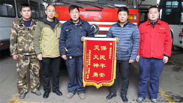 今天,保昌摩托車門市老板,帶著一面鮮亮的錦旗和萬分的感激之情,來到我公司煤氣防護(hù)消防救援隊(duì)處,將寫有“滅火神勇,保民平安”的錦旗送到公司救援隊(duì)員的手里,緊握著我們工作人員的手誠懇地說:“十分感謝普陽救援隊(duì),在緊急關(guān)頭,及時(shí)趕到,控制住了火勢,將我的損失降到了最低,否則后果不堪設(shè)想,真的非常感謝!”