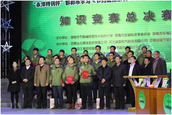 在12月12日結束的“永洋特鋼杯”邯鄲市學習《節(jié)約能源條例》和《減少污染物排放條例》知識競賽中,一路殺入決賽,取得了第一名的好成績。