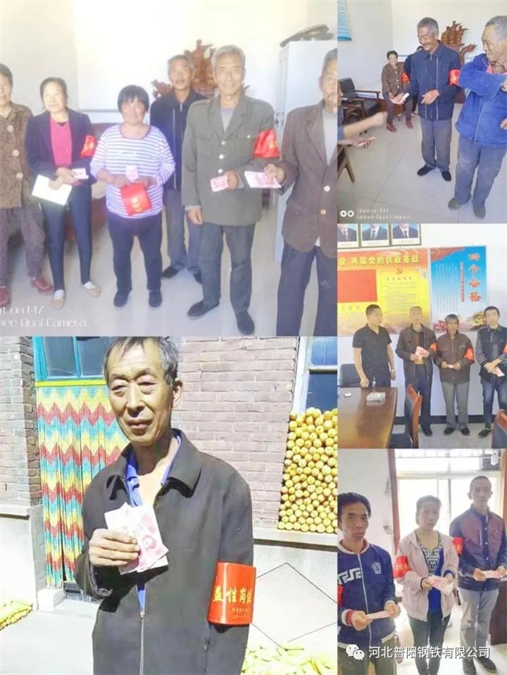 國(guó)慶節(jié)當(dāng)天,陽(yáng)邑鎮(zhèn)在柏林前街村委會(huì)舉行精準(zhǔn)脫貧公益性崗位第一個(gè)月工資發(fā)放儀式。陽(yáng)邑鎮(zhèn)黨委書記王增平、鎮(zhèn)長(zhǎng)周現(xiàn)偉、民政主管郭奮強(qiáng)、普陽(yáng)鋼鐵“精準(zhǔn)扶貧辦”主任楊建軍、24個(gè)村支部書記、公益性崗位人員代表共計(jì)50余人參加了發(fā)放儀式。