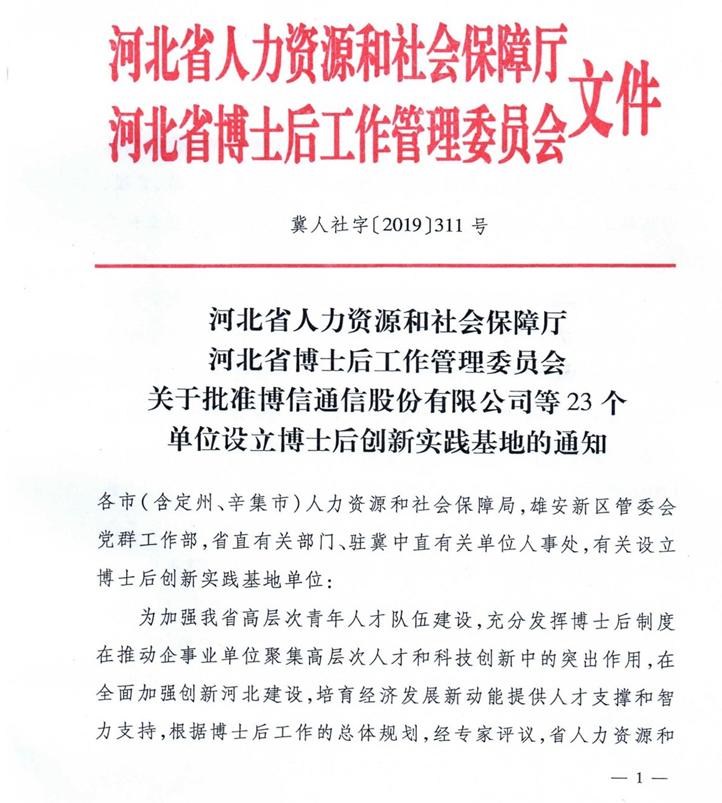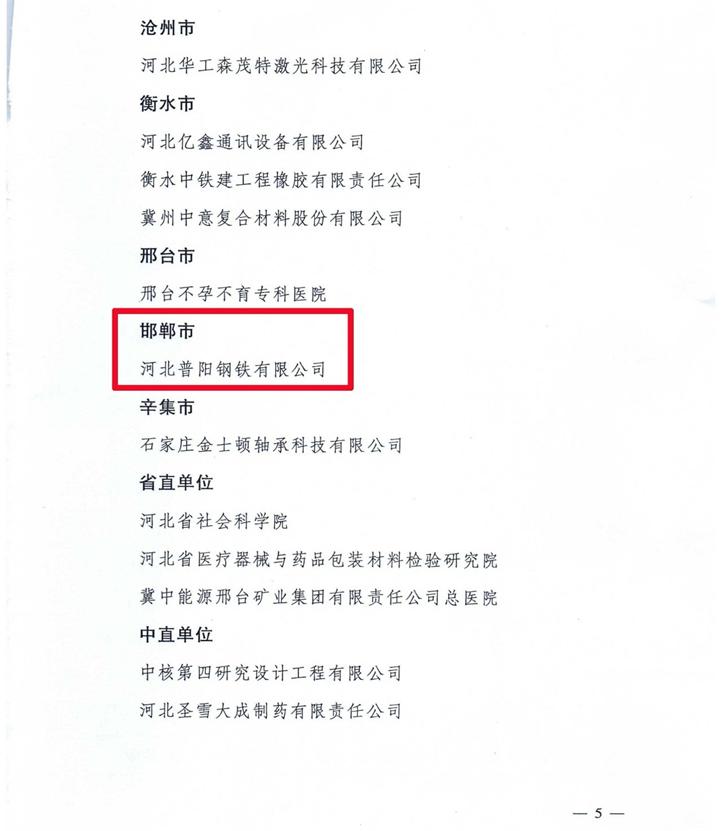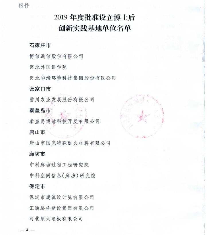 近日,根據(jù)《河北省人力資源和社會(huì)保障廳、河北省博士后工作管理委員會(huì)【2019】311號(hào)》文件公示,全省共有23家單位獲批設(shè)立博士后創(chuàng)新實(shí)踐基地,其中河北普陽鋼鐵有限公司榜上有名,是邯鄲市今年唯一入選的鋼鐵企業(yè)。