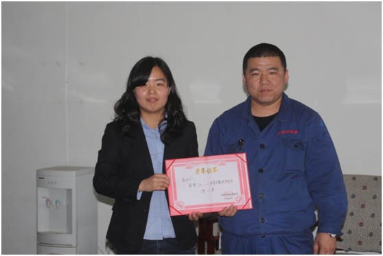 2013年“迎五一”體育比賽圓滿落下帷幕。此次比賽得到了各單位的大力支持,各參賽選手以自己精彩的表現(xiàn),體現(xiàn)了普陽人“團(tuán)結(jié)、拼搏、向上”的精神風(fēng)貌,得到了公司領(lǐng)導(dǎo)及廣大工友的一致贊譽(yù)。5月7日下午,辦公室主任石現(xiàn)英代表公司為優(yōu)勝的單位和個人頒發(fā)了獎金和證書。圖為石現(xiàn)英與焦化廠領(lǐng)獎代表的合影。