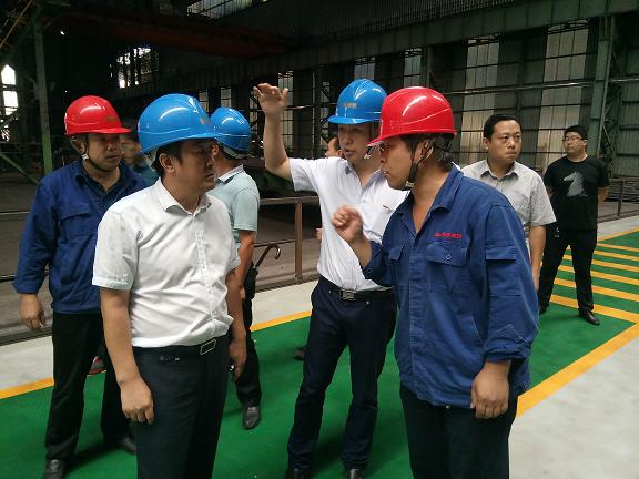 7月28日上午,武安市政府副市長馬曉斌、環(huán)保局張文慶、陽邑鎮(zhèn)楊貴寶等領(lǐng)導(dǎo),到我公司調(diào)研2017年大氣污染綜合整治項(xiàng)目實(shí)施進(jìn)度情況。公司總經(jīng)理石躍強(qiáng)、副總經(jīng)理李成安、環(huán)保科長李劍春陪同調(diào)研。圖為公司總經(jīng)理石躍強(qiáng)陪同馬曉斌副市長參觀中厚板車間美化、亮化工程改造情況。