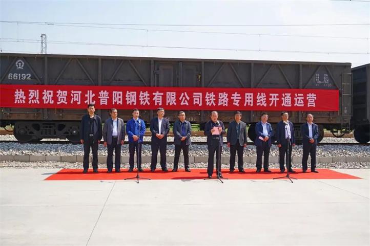 韓??飨砦浒彩小八奶装嘧印睂ζ贞栬F路專線的開通表示祝賀,并在講話中提出了“一個要求”“一個希望”和“一個邀請”:要求普陽鋼鐵一定要做好鐵路專線的運營維護工作,發(fā)揮其真正的作用;希望普陽鋼鐵在環(huán)保治理,不論是在有組織排放、無組織排放還是在大氣綜合治理方面,進一步做好表率、做好示范;邀請北京鐵路局邯鄲貨運、車務等部門領導常到武安走走看看,在武安鐵路運輸建設方面多提指導意見。